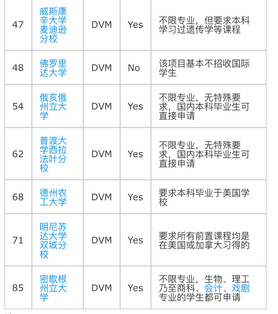 美国开设DVM program的学校招收国际学生的学校推荐:
