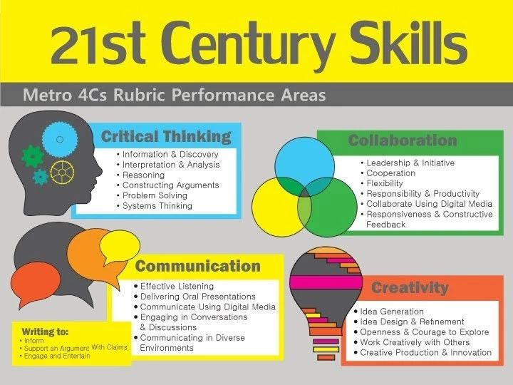 美国21世纪技能学习联盟P21(Unite States-base Partnership for 21stCentury Skills) 将4个C打头的词评选为本世纪最需要学习的4种能力。
