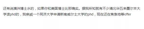 对于这个问题,不少人也各执己见,说澳洲博士水的大多也是对比美国博士来说的。