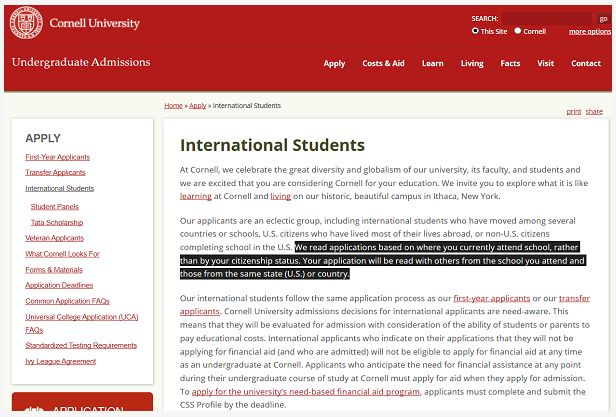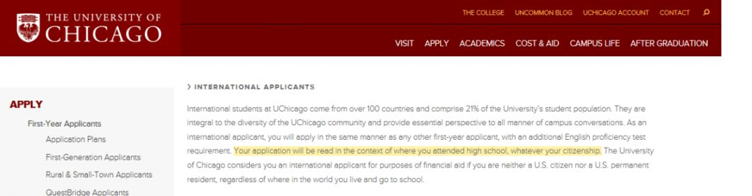 通过上图我们可以看到像芝加哥、康奈尔这样的名校已经将国际生定义为:“申请人就读的学校是否在美国,而不是学生的国籍”。