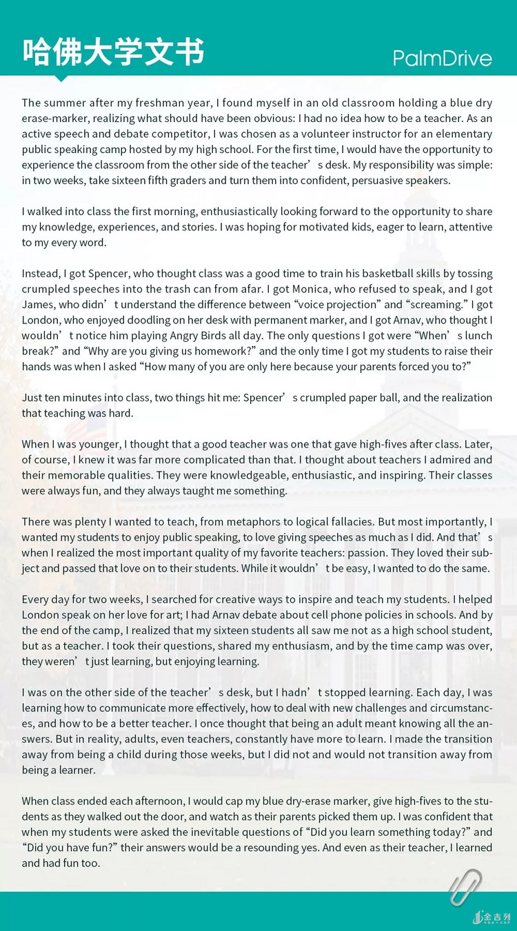 需要注意的是,虽然Phillip讲述了他成功的经历,但是一篇好的文书并不一定要写一个成功的故事。 如果你试图编造一个成功的故事,你的故事会显得非常不真诚。 你可以通过很多方式展示你的成就!