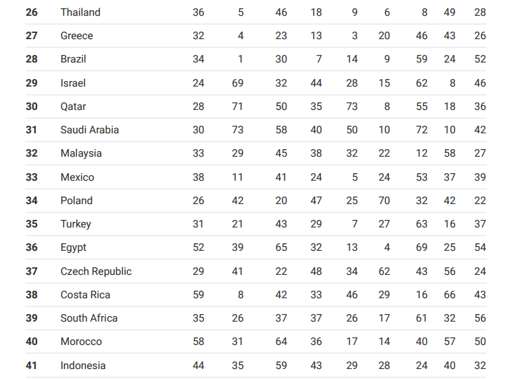 与去年相比,英国的整体排名下降了一位。伦敦是全球游客量最多的城市之一,且长期作为欧洲经济中心,虽然已脱欧,但是英国在文化和世界影响力方面,排名没有变化。