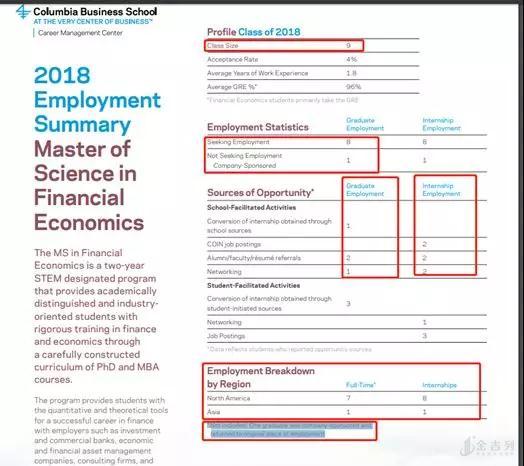 由于哥大学生的独特技能,哥伦比亚网络和纽约的优势,暑期实习和全职工作一直非常出色。 学生实习和全职就业机会包括:资产管理公司、中央银行 、经济咨询公司、投资 / 商业银行 、私募股权公司 、政策组织 、研究助理、资产管理公司、经济金融咨询公司、对冲基金 、投资 / 商业银行 、博士课程、私募股权公司 、房地产开发公司。