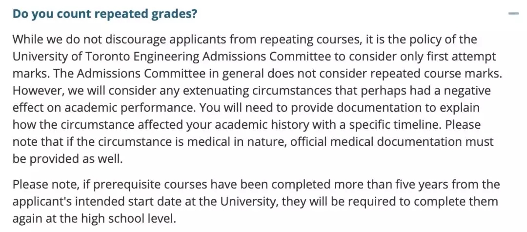 多伦多大学主校工程专业一般不接受重修的成绩,但如果有合理的理由可以提供说明文件,比如医院的就医记录等,录取办公室会酌情考虑。