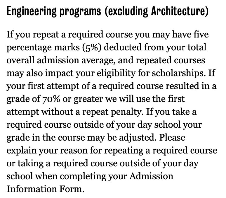 但和多伦多大学一样,一些高竞争专业对重修课程有额外的限制,比如: