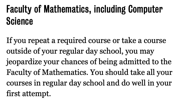 重修课程可能会影响申请滑铁卢数学专业,因为滑铁卢数学专业希望一个优秀的申请者应该在第一次尝试的时候就取得好成绩。