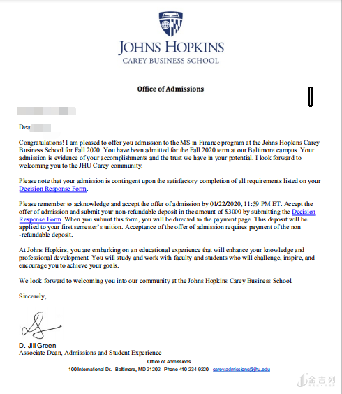 录取学校:约翰霍普金斯大学 数学与应用数学