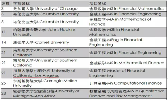 美国开设金工硕士的学校,以名校居多。专排比较靠前的有普林斯顿大学、巴鲁克学院、卡耐基梅隆大学、哥伦比亚大学、纽约大学、康奈尔大学等等, 以下是美国TOP30学校开设金融工程硕士的项目及名称: