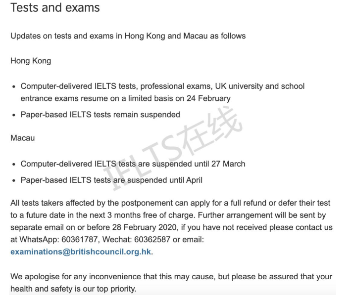 据英国文化教育协会消息:中国香港地区自 2月24日 恢复雅思机考,纸笔考试继续暂停;中国澳门地区自 3月27日 恢复雅思机考,纸笔考试继续暂停。