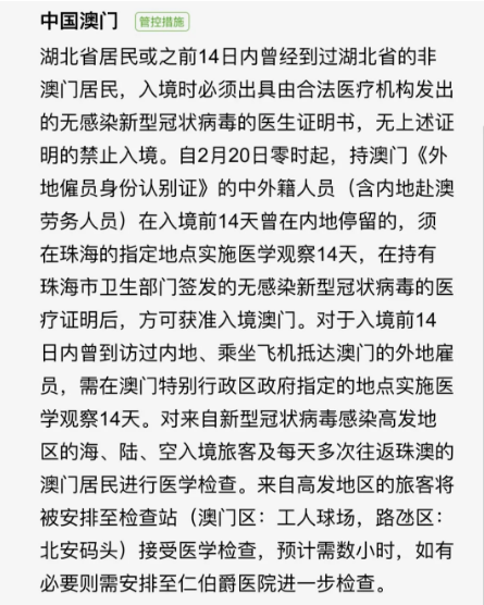 另外大家需要注意的是:除了拥有在有效期内的港澳通行证之外,在报名之前,大家需要确定自己是否符合香港、澳门地区的入关条件。老师已为大家找好目前中国香港、澳门地区的入关信息,见下图: