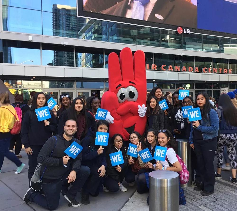 麦当娜中学的学生参加了由WE慈善机构 在加拿大航空中心 举办的WE Day活动 。 WE Day是一个强有力的,改变人生的事件,它将现场演唱会的精力与领导力和变化的非凡故事的灵感相结合。