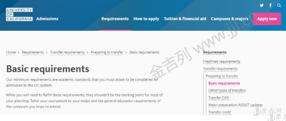 要注意, 绝大多数情况下,学校最多只接受2年的课程学分 ,多了就浪费了!另外,由于只有两年的成绩,所以很多美国大学还会要求学生提交高中成绩单。 咱们以加州大学为例,UC在官网中给出了学生转学的具体要求,如下——