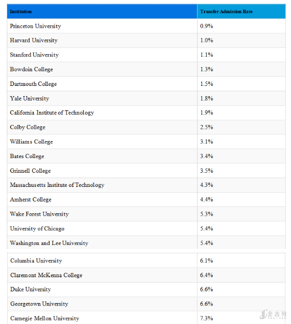完整名单: https://www.collegetransitions.com/transfer-amission-rates