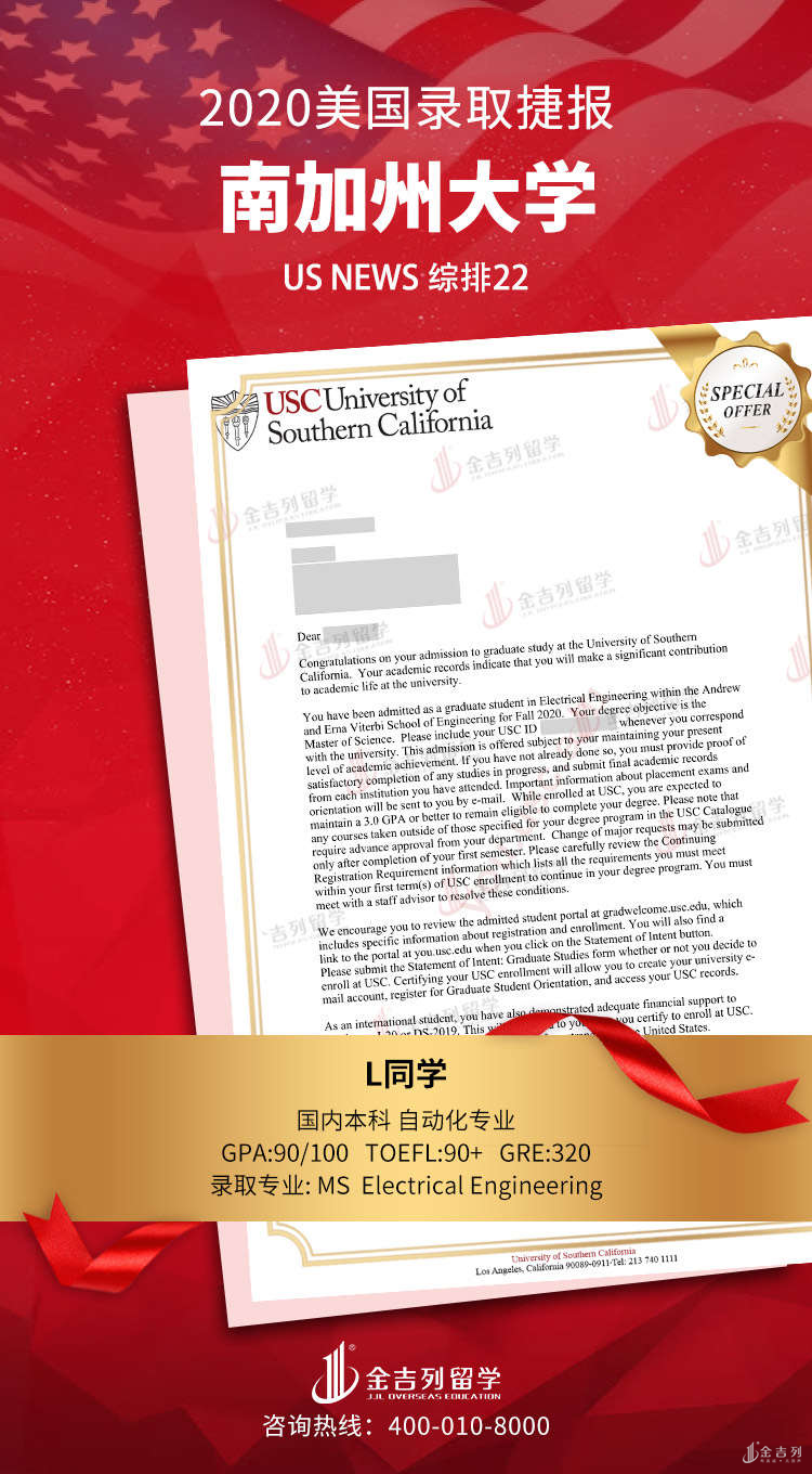 录取结果:University of Southern California 南加州大学