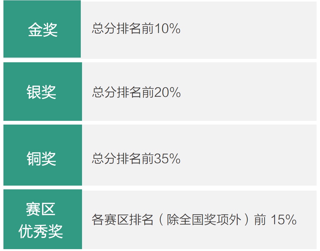中国赛区奖项: 金牌、银牌、铜牌、成绩优异奖。 一般比赛之后 6 周公布竞赛结果。