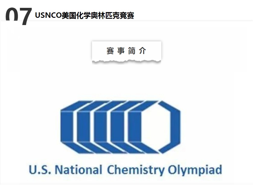 美国化学奥林匹克竞赛(U.S. National Chemistry Olympia,简称USNCO)由美国化学学会(American Chemical Society,简称ACS)自1984年开始举办。是美国极具影响力的高中化学竞赛,旨在通过该竞赛激发培养新一代年轻人对学习研究化学的兴趣和潜能。作为美国顶尖赛事之一,每年有近16,000名美国学生参赛,且此竞赛的最优秀的选手将代表美国参加国际化学奥赛(International Chemistry Olympia,简称IChO)国家队选手仅针对美国公民/绿卡持有者。