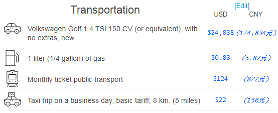 买一辆 1.4T 大众高尔夫新车月话费 24838 美元,现在 1 升气 0.83 美元,乘坐公共交通的话,一个月预估花费 124 美元。