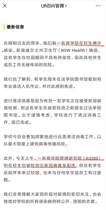 UNSW目前共确诊2例!首例为商学院学生,而第二例是AGSM管理学院学生!