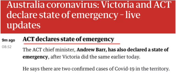 此外不仅仅是维州,首都地区也宣布进入紧急状态。