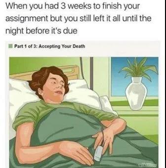 如果将final week比喻成死亡线,大多数学生不会去尽可能避开它,而是…静静地等待死亡,真是人类迷惑行为之最。
