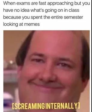 下边就给大家盘点一下大学生考前必经历的 四个阶段 ~这些表情包,留学生肯定都懂~