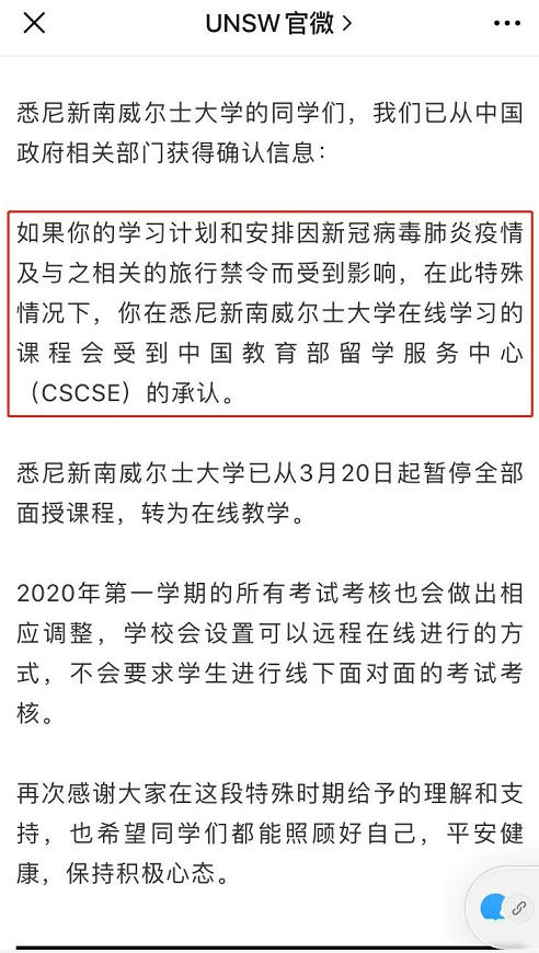 三所澳洲八大悉尼大学、悉尼新南威尔士大学、昆士兰大学已经公布网课受中国教育部认可。