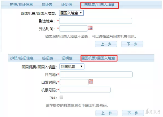 回国机票/入境章
