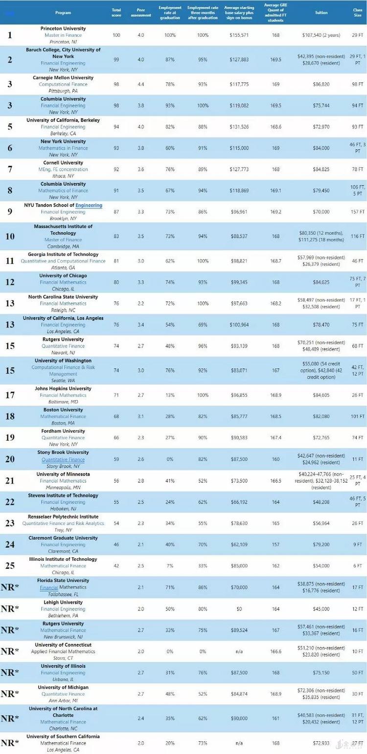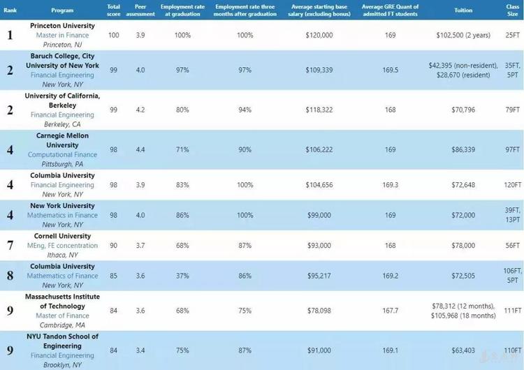 该榜单对金融工程类的学生,尤其是打算留美工作一段时间的学生,一直有着重要的指导作用。