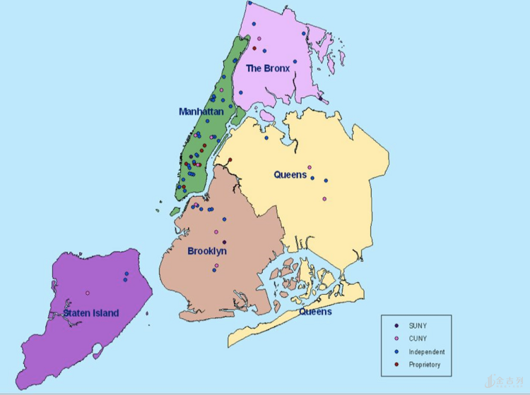 上面介绍了位于New York City的部分大学,其中除了纽约市立大学CUNY的部分校区外,其余都分布在纽约市最富有、最繁华的曼哈顿区。