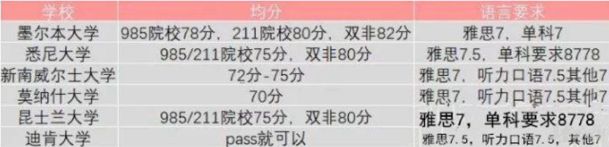 语言要求:雅思总分7,r/w 7, l/s 7.5 托福102 ﹙ reaing 24 writing 27 listening 27 speaking 24﹚