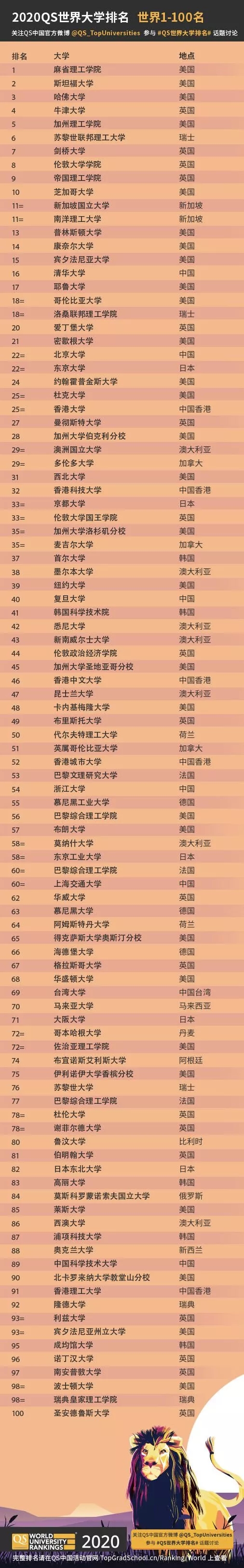 全球高等教育研究机构qs quacquarelli symons发布了2020年qs世界大学排名!