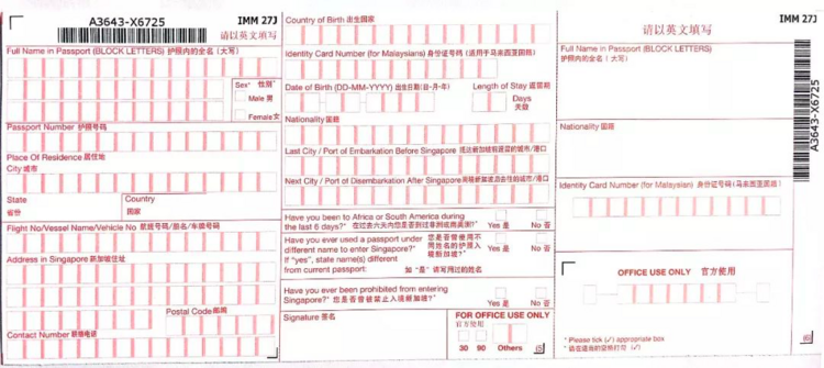 ▲空白的入境卡