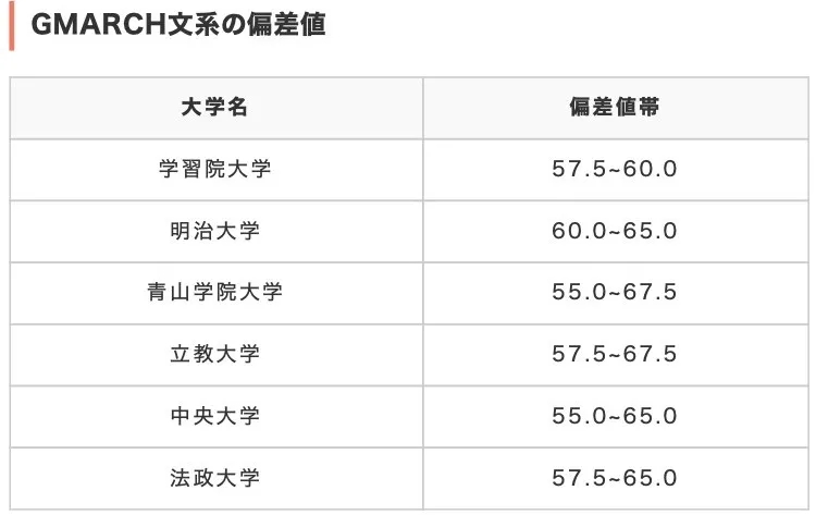 GMARCH是位于首都圈的一类大学,偏差值仅次于早庆上理ICU(国际基督教大学)。