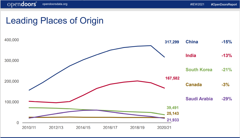 《2021美国门户开放报告》发布:中国在美留学生317,299,但仍是美国最大生源国