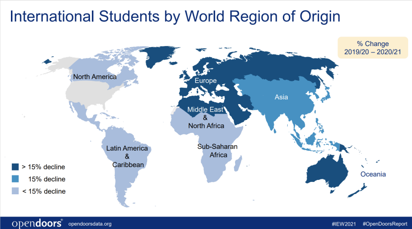 美国时间11月15日,美国国际教育学会(International Eucation Exchange)发布了2021年《美国门户开放报告》。