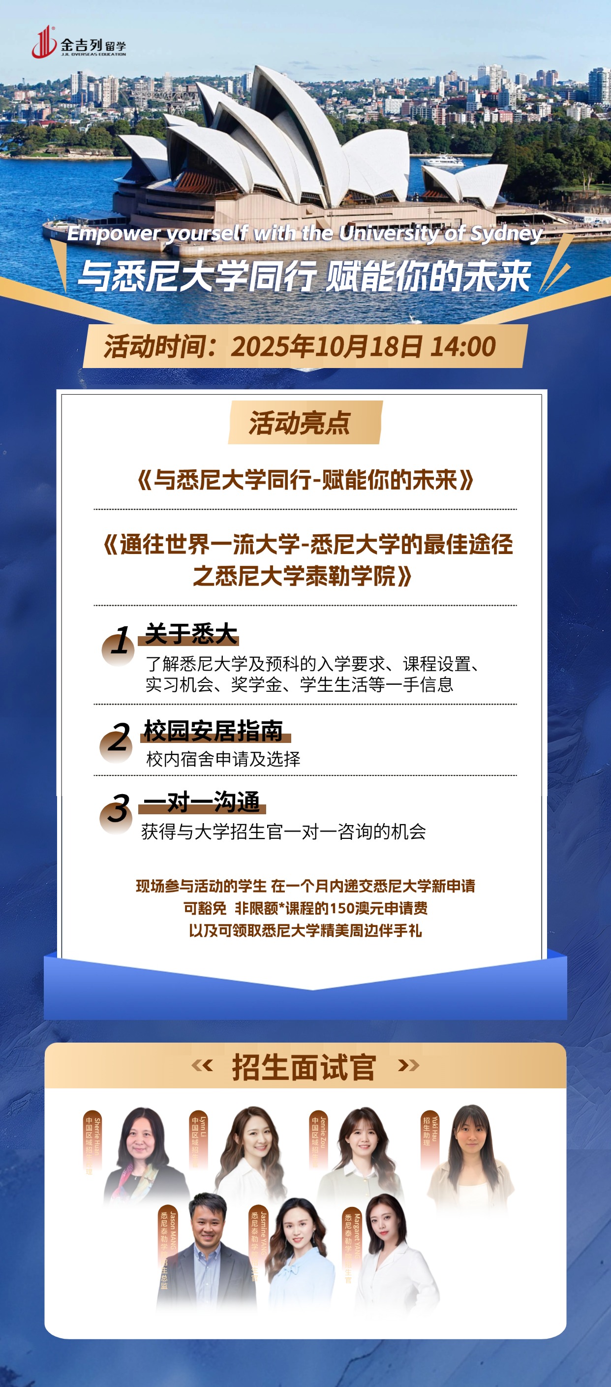 金吉列留学北京分公司重磅推出【Empower yourself with the University of Sydney与悉尼大学同行,赋能你的未来-北京站】活动!欢迎各位同学们积极报名!