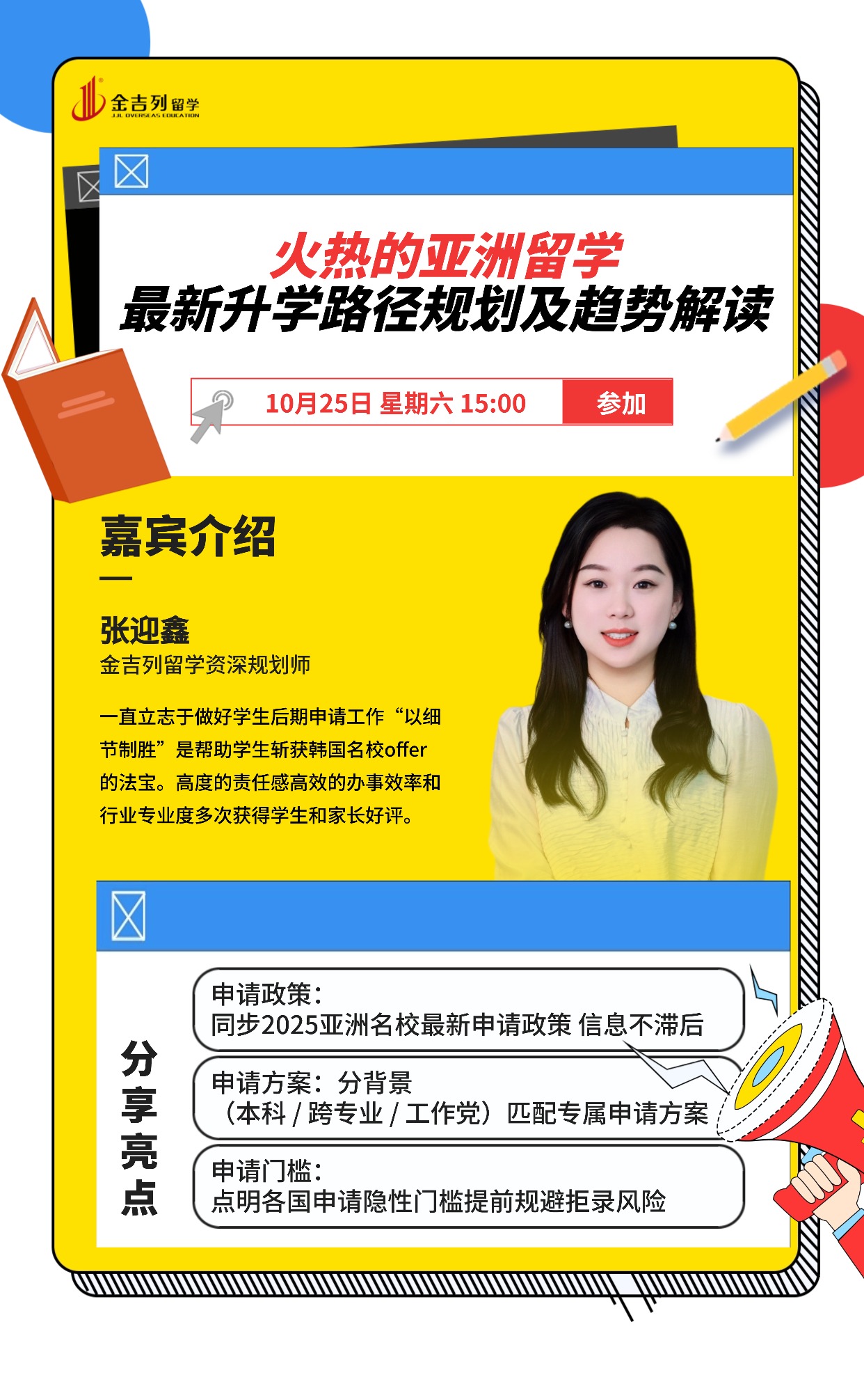 金吉列留学北京分公司重磅推出【火热的亚洲留学 最新升学路径规划及趋势解读】活动!欢迎各位同学们积极报名!