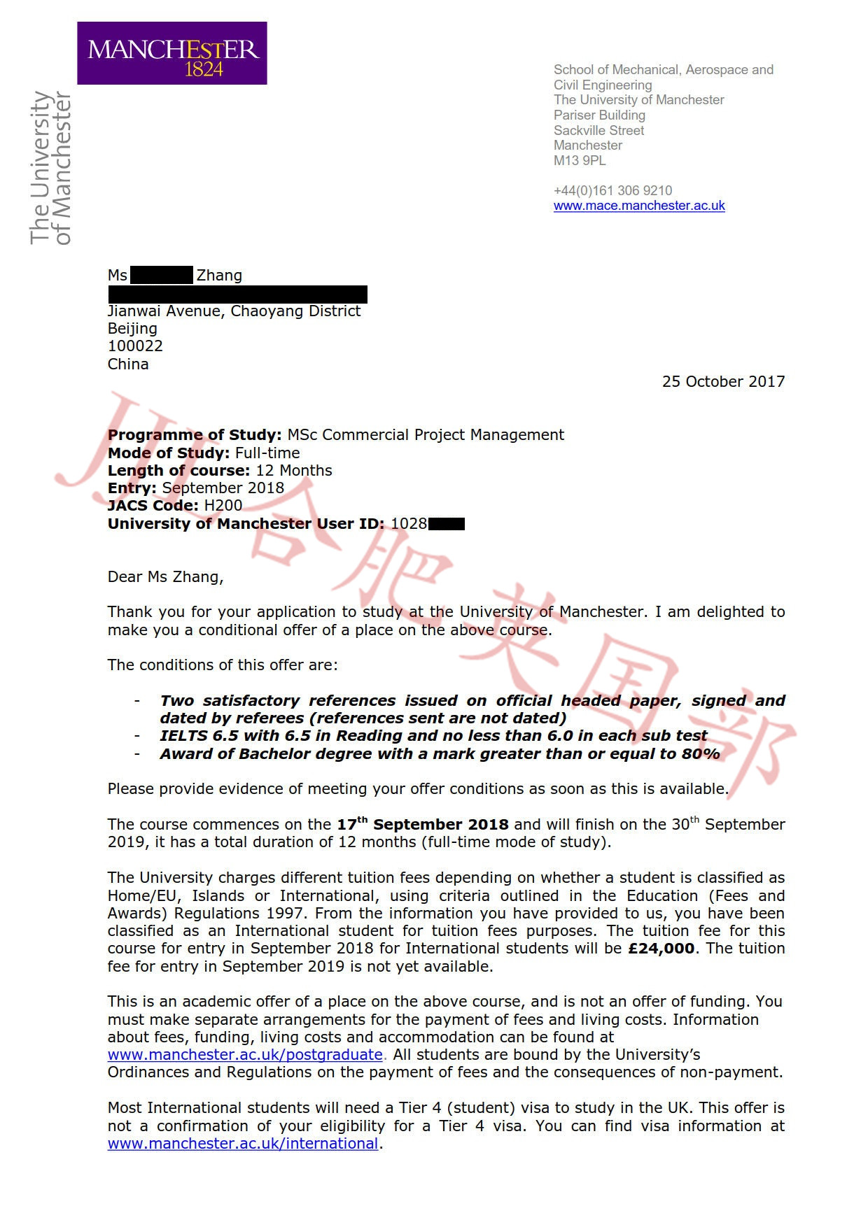 录取院校:曼彻斯特大学 诺丁汉大学 约克大学 录取专业:商业项目管理