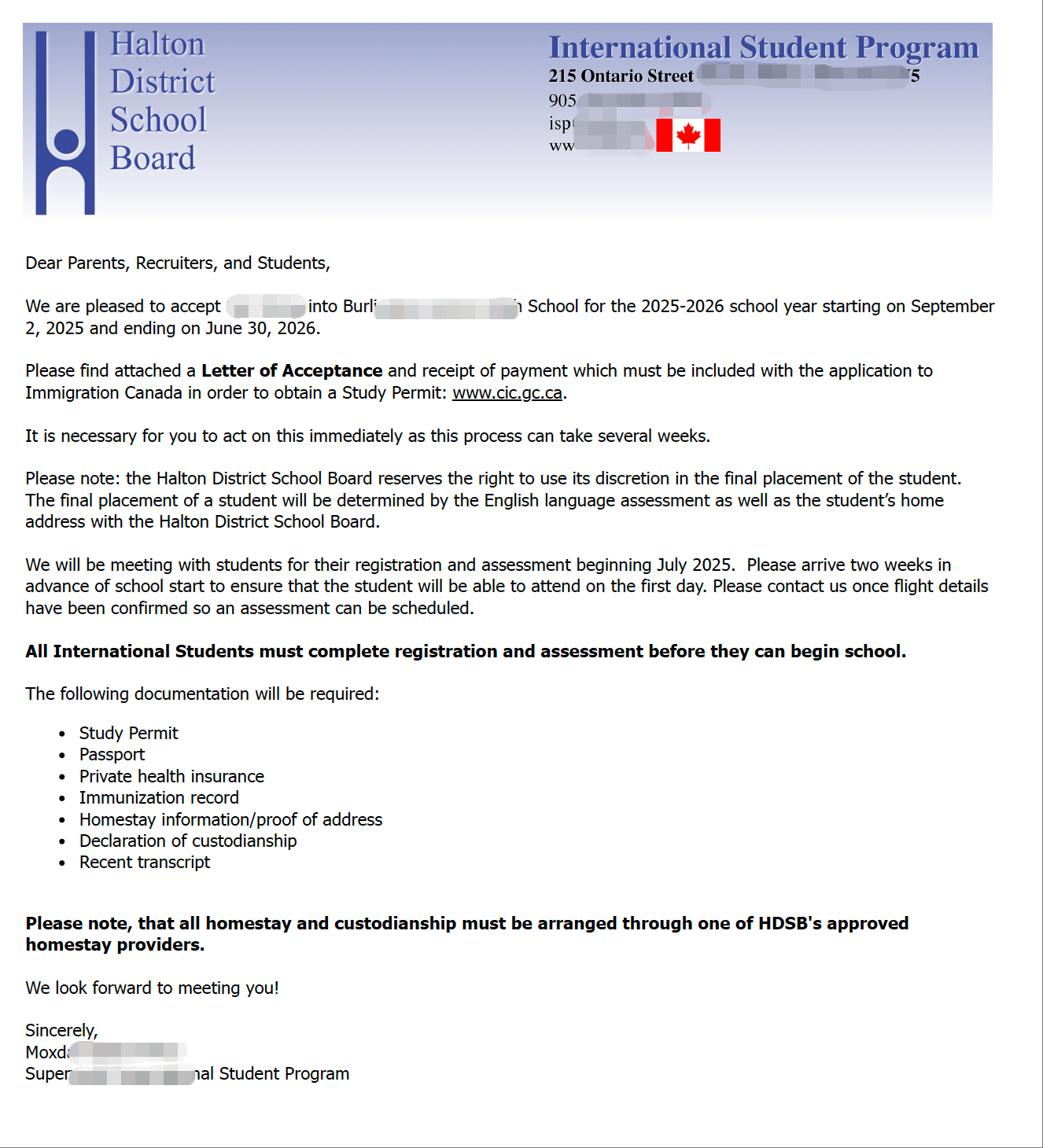 家长对生活的片区有一定的要求,希望住在白人区,语言环境好点,治安好点,最终确定去哈尔顿公立教育局,孩子也顺利拿到了录取。