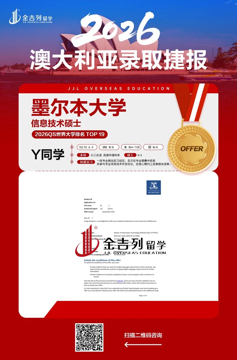 作为全球领先的研究型大学,墨尔本大学连续多年位居世界大学排名前列。在最新的2026QS全球大学排名中,墨尔本大学位列全球第19位,展现了其在多个学术领域中的领导地位。