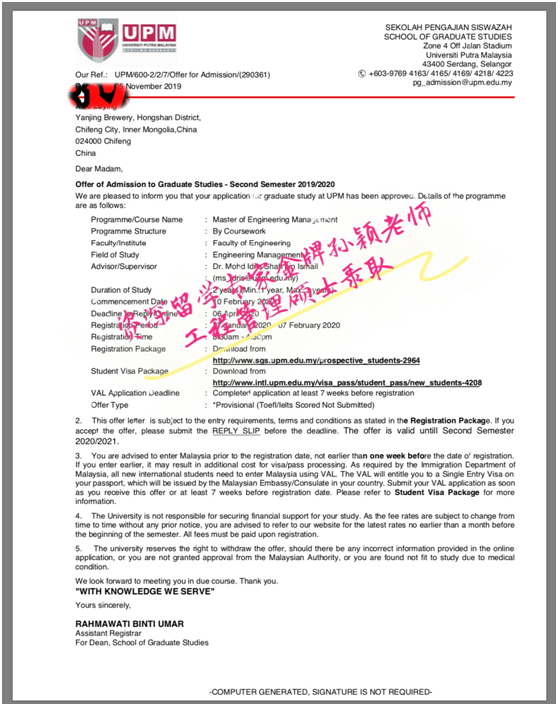 博特拉大学比较欢迎中国学生申请其研究生和博士,学院的导师告知:会以最快速度录取金吉列留学推荐的学生,XZY同学在两周内获得了硕士OFFER。