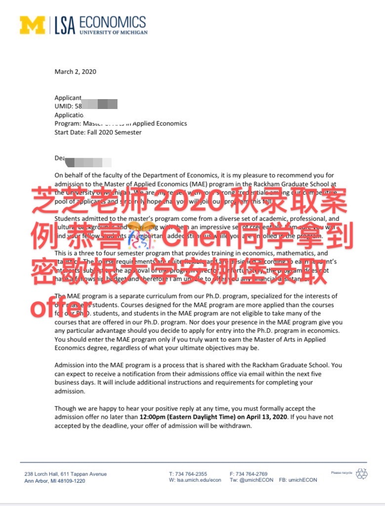 此类应用经济学项目招生数量较多,每年的招生计划约在120-150人不等,发放的录取数量更多,且由于密歇根大学的排名并不是很高,导致此项目每年的录取门槛相对较低。