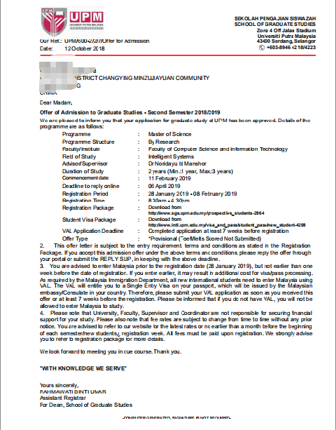 博特拉大学录取offer