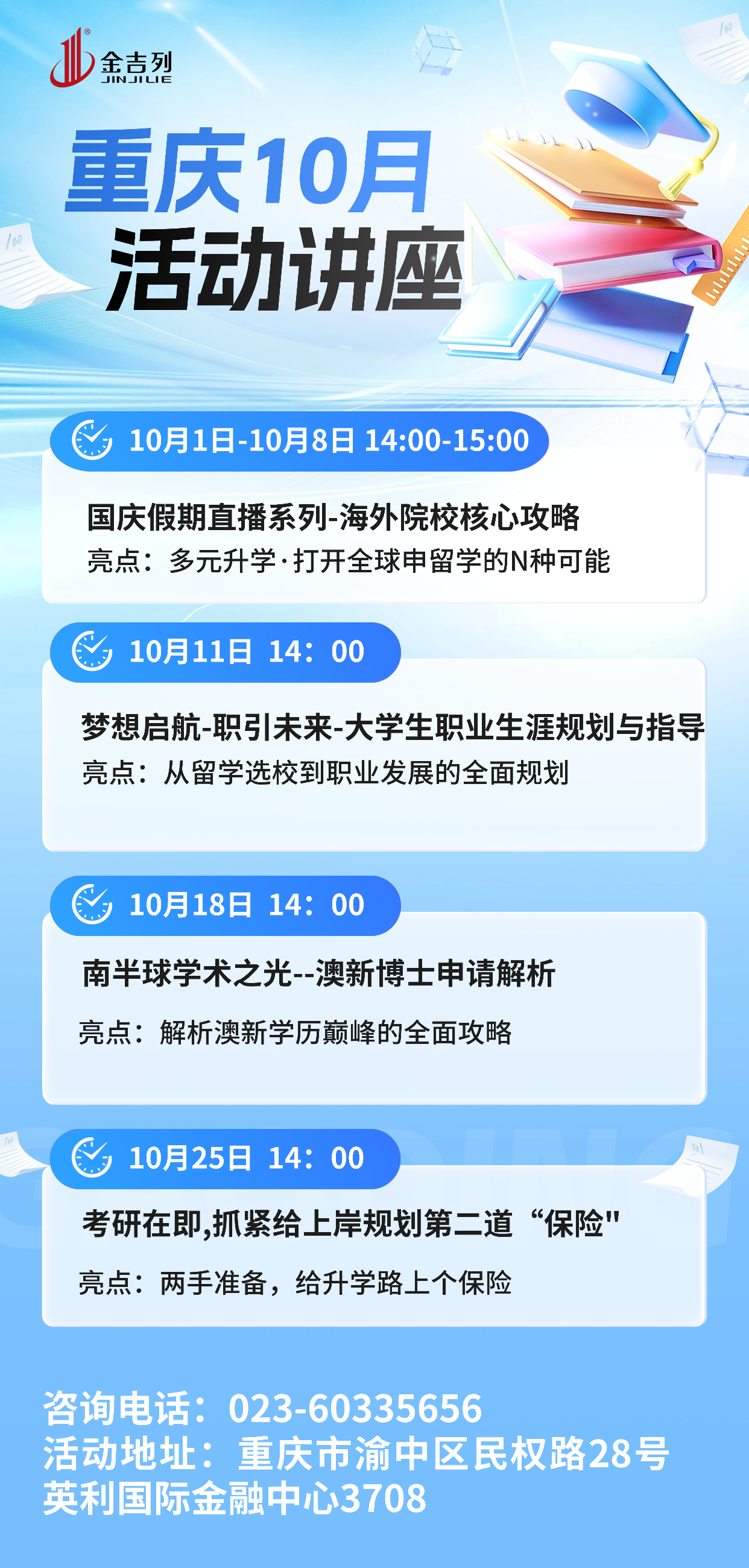 讲座地点:重庆市渝中区民权路28号英利国际金融中心3708活动时间:2025-10-01 14:00