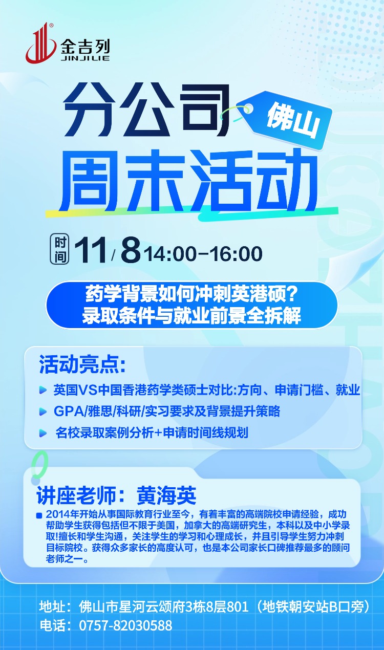 活动亮点: 英国VS中国香港药学类硕士对比; GPA/雅思/科研/实习要求及背景提升策略;名校录取案例分析+申请时间线规划