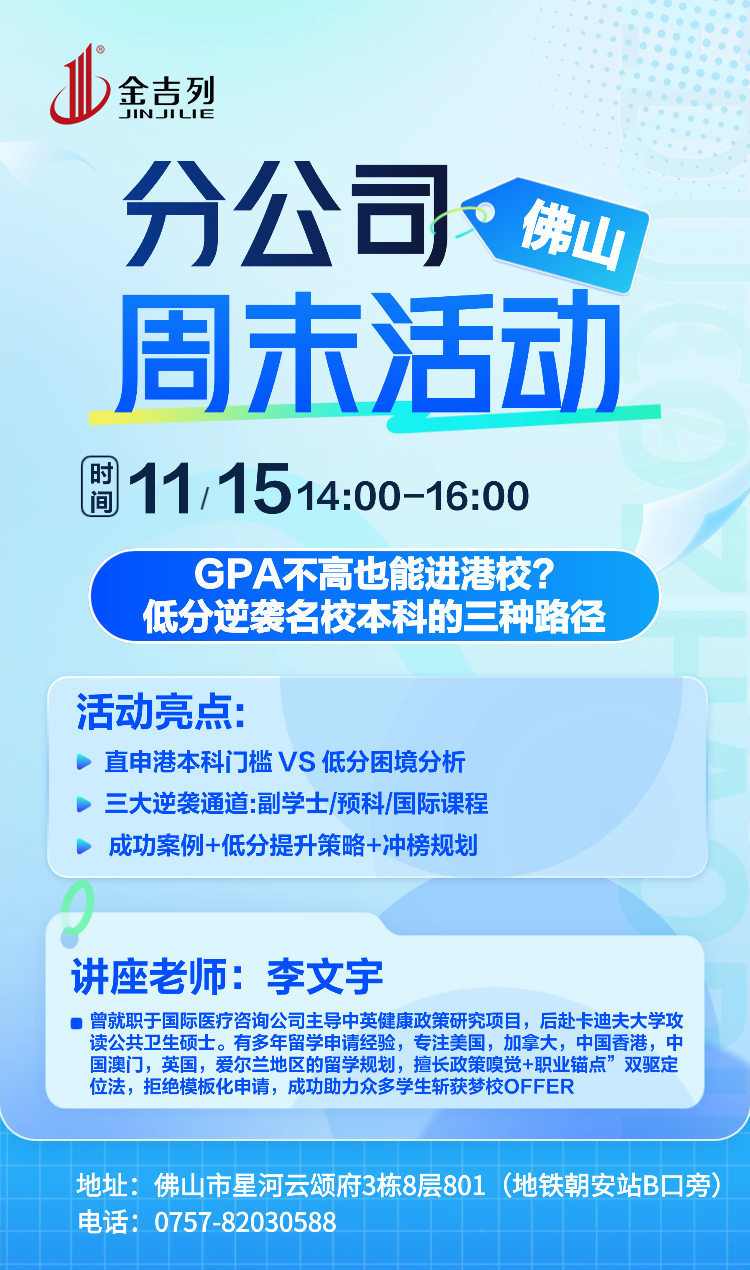 活动亮点: 直申港本科门槛 VS 低分困境分析; 三大逆袭通道:副学士/预科/国际课程;成功案例+低分提升策略+冲榜规划