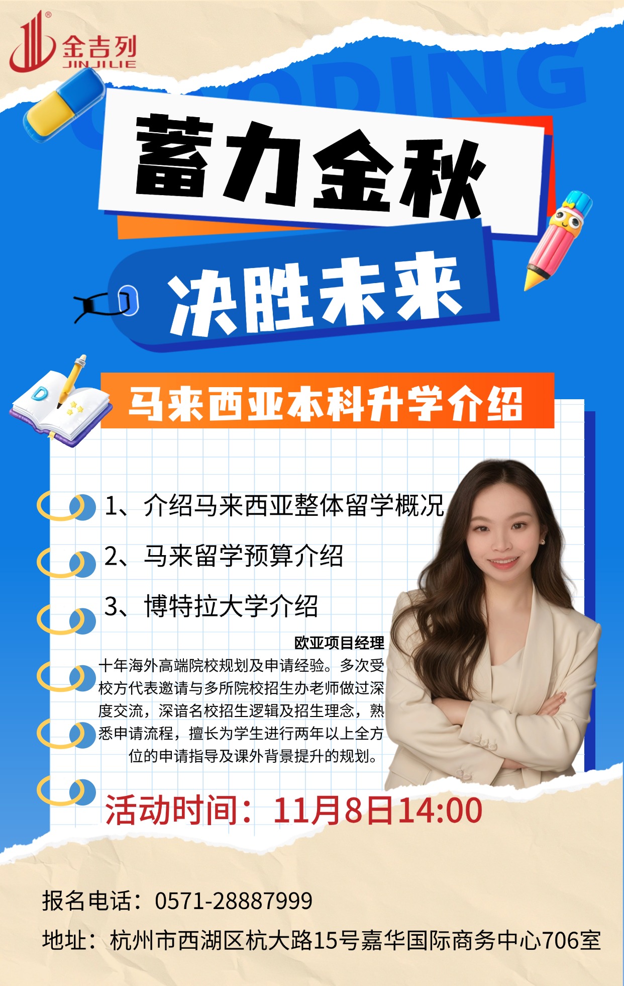 讲座地点:杭州市西湖区杭大路15号嘉华国际商务中心706室活动时间:2025-11-08 14:00