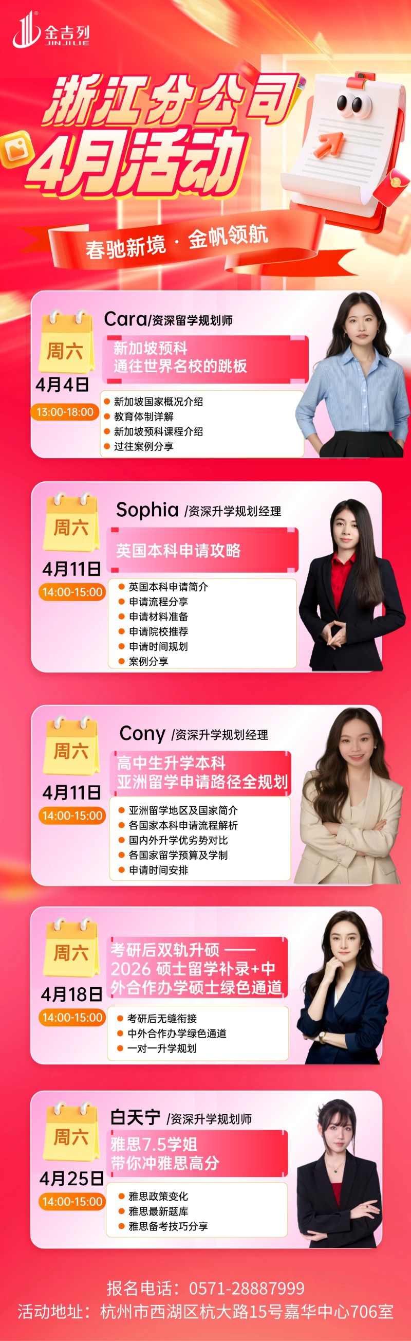 讲座地点:杭州市西湖区杭大路15号嘉华中心706室活动时间:2026-04-04 13:00