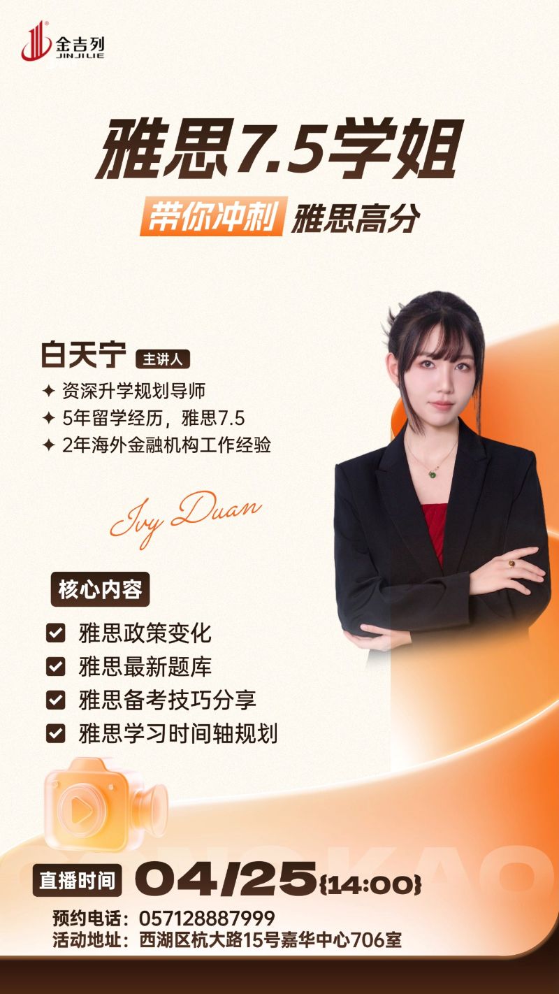 讲座地点:杭州市西湖区杭大路15号嘉华中心706室活动时间:2026-04-25 14:00