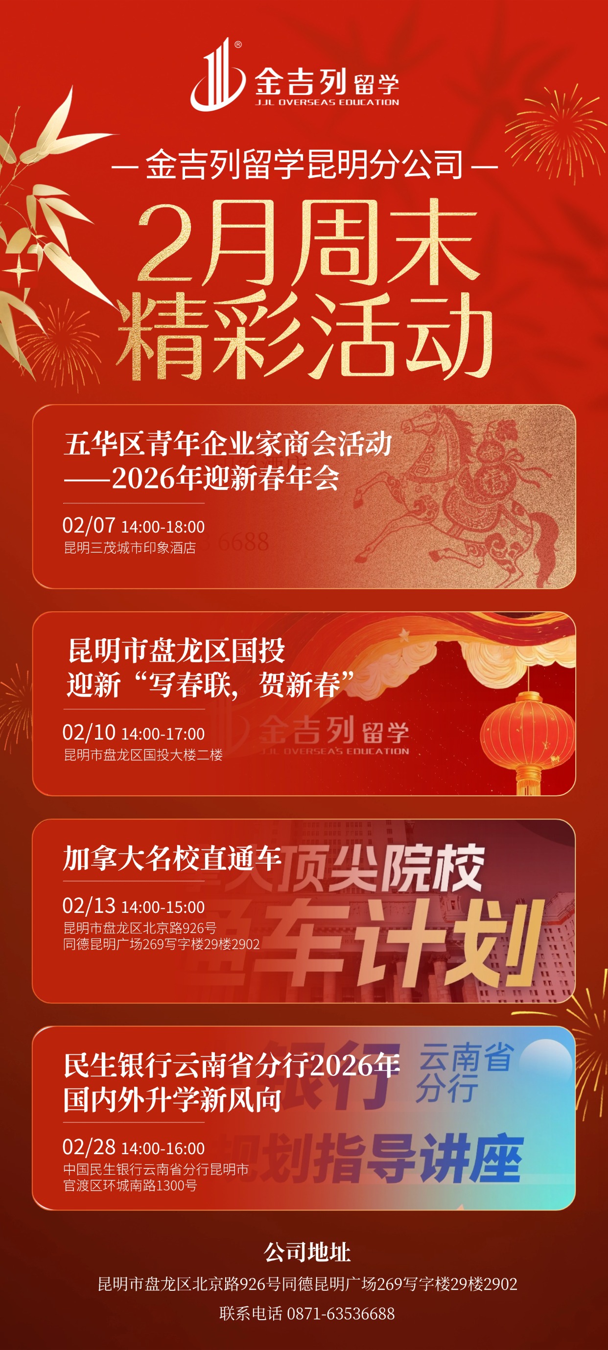 讲座地点:1、五华区青年企业家商会活动——2026年迎新春年会;2、昆明市盘龙区国投迎新“...活动时间:2026-02-01 10:00